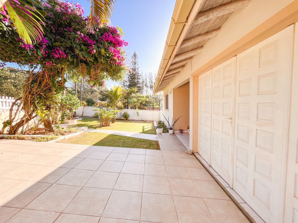 O amplo jardim com uma horta é um convite para apreciar a natureza e cultivar seus próprios alimentos frescos. Além disso, a casa é construída com madeiras de qualidade, que conferem um ar de requinte e sofisticação, adicionando um toque especial ao ambiente.